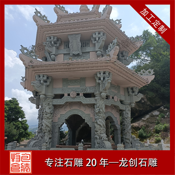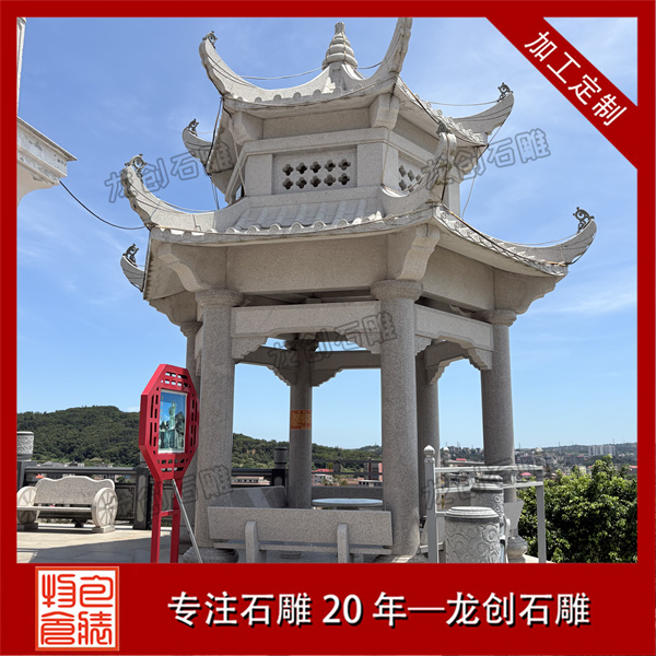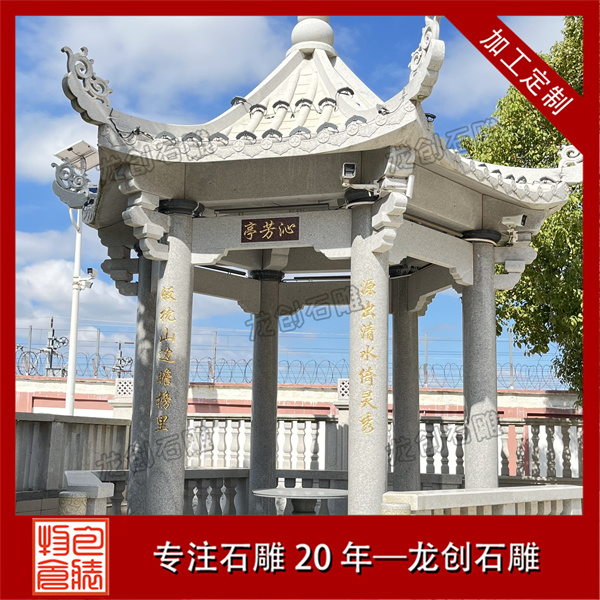 在實際應用中,六角涼亭適合置于庭院中心、水岸平臺或景觀軸線的節點位置。常見尺寸為檐口直徑3-4.5米,地面至寶頂高度4-6米。選購時應重點關注石材的質地均勻度、構件加工精度及結構安全性,確保各連接部位結合緊密。安裝時需做好基礎墊層,采用預埋件與亭體可靠連接。合理的亭體設計與布局能形成良好的觀景視野,為園林空間增添富有傳統文化韻味的休憩場所。